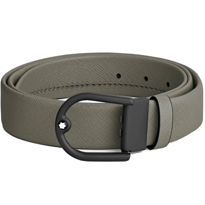 Кожаный ремень 35 мм из кожи серого цвета, пряжка в форме подковы от магазина премиальных ручек Premium Pens в Находках.